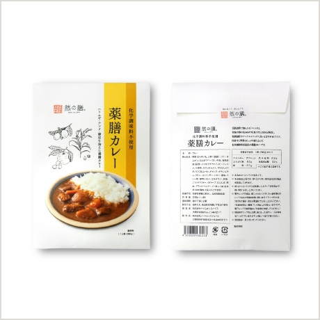 国産牛と野菜をたっぷり盛り込んだ化学調味料不使用の薬膳カレーです。