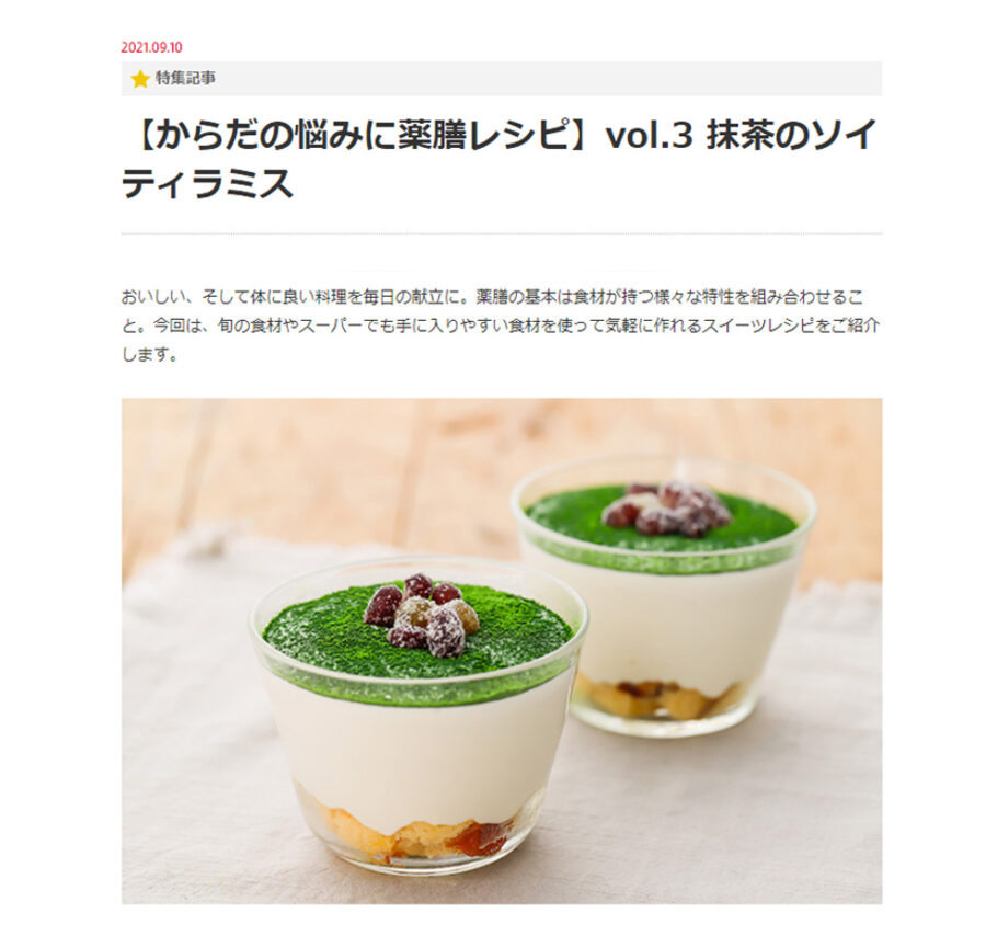 2021.09.10 当社の考案するレシピが地元の情報発信サイト『仙臺いろはWEB』の『【からだの悩みに薬膳レシピ】Vol.3』に掲載されました。 レシピは『仙臺いろは』WEB上でもご覧いただけます! ~オンラインショップにて、レシピ本販売中!!~ 大人気レストラン「然の膳」の世界一美味しいカンタン薬膳ごはん 前の記事へ 9月1日「然の膳 大阪医科薬科大学 薬学部店」OPENのお知らせ 次の記事へ 新商品!然の膳 かける薬膳【紫】販売開始!! ニュース一覧へ この記事を見た人は、こちらの記事も見ています 【薬膳レシピ】おもてなしスイーツ!貧血を予防に「キャロットケーキ」 ~手軽に薬膳~ レシピ動画【Vol.17】配信開始のおしらせ 大人気!然の膳薬膳カレーがリニューアルしました!店舗&通信販売も開始します♪ 6/19仙台放送で、然の膳が紹介されました!