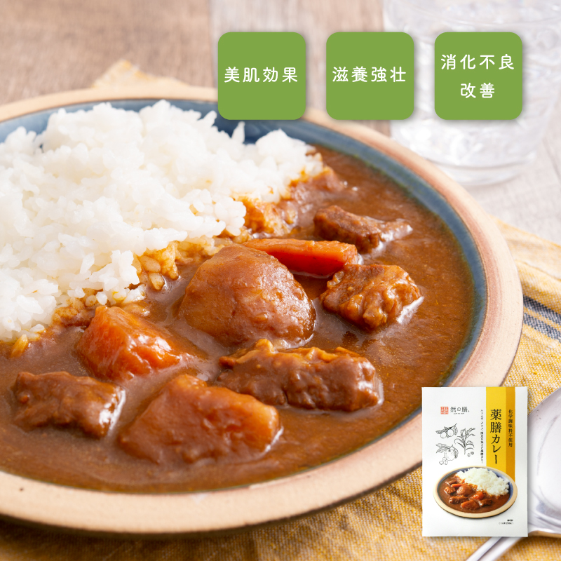 然の膳ではそんな健康的なカレーをもっと体に良いものにするために、オリジナルで「ハトムギ」「ナツメ」「陳皮」という他では珍しい「生薬」を追加しています。