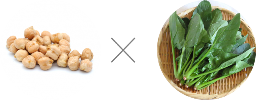 | 血の材料となる鉄分を多く含むひよこ豆は貧血予防に効果的。ほうれん草との組み合わせでその効果をさらにアップ! |