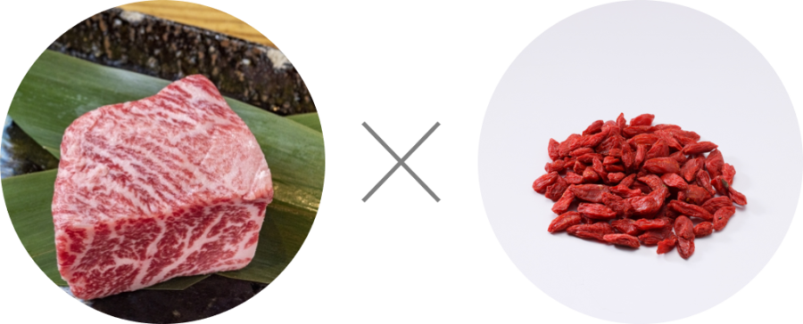 鉄分が豊富な牛肉を生薬でもあるクコの実、八角、そしてソースの黒ごまと一緒に摂ることでアンチエイジング効果が高まる一品。 |