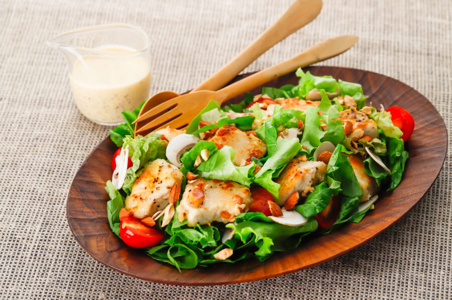 ▼ルッコラと香ばしいチキンのおかずサラダ
