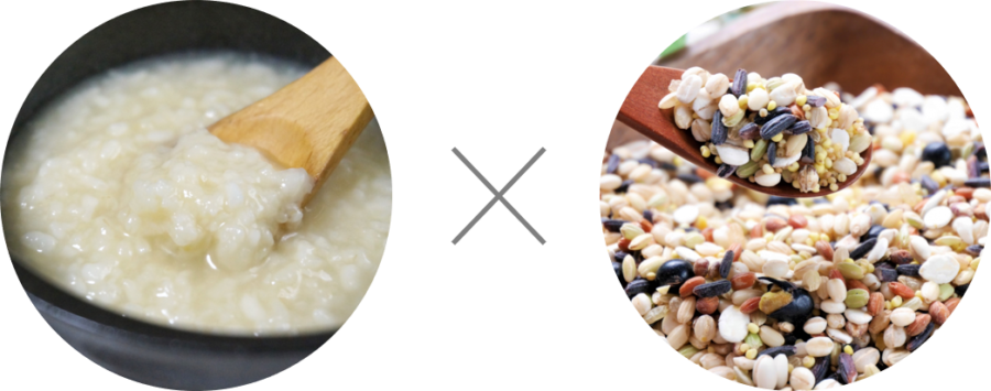 きび、あわ、玄米、押し麦等がとれる雑穀米をお米と一緒におかゆに。