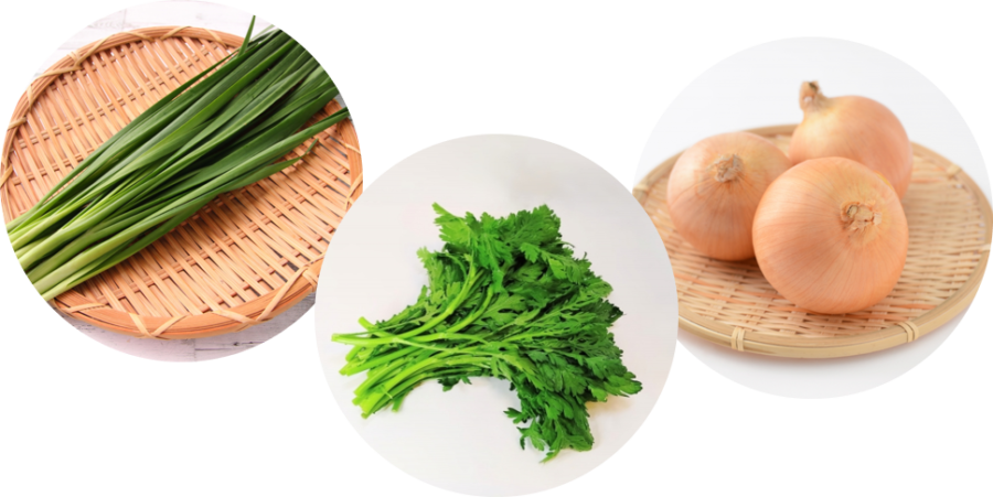 内蔵機能を高めるにらと、消化を助ける春菊、そして食欲不振に効果のある玉ねぎを一緒に摂ることで弱っていた胃腸を元気に。 |