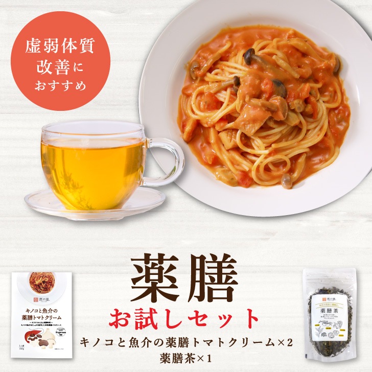 キノコと魚介の薬膳トマトクリーム2個 薬膳茶1個入り