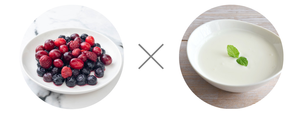 ヨーグルトにはお肌のバリア機能を高めるセラミド(肌の潤いを保つ成分)の量を増やす作用があると言われています。そこにベリーの抗酸化作用を組み合わせることで、さらに美肌の効果に期待ができます。