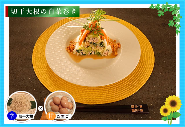 ★7/18に放送されました 「切干大根の白菜巻き」 ですが、7/22(月)から「然の膳」で、然の膳オリジナルレシピにアレ …