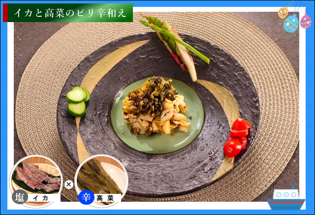 ★8/22に放送されました 「イカと高菜のピリ辛和え」 ですが、8/26(月)から「然の膳」で、然の膳オリジナルレシピに …